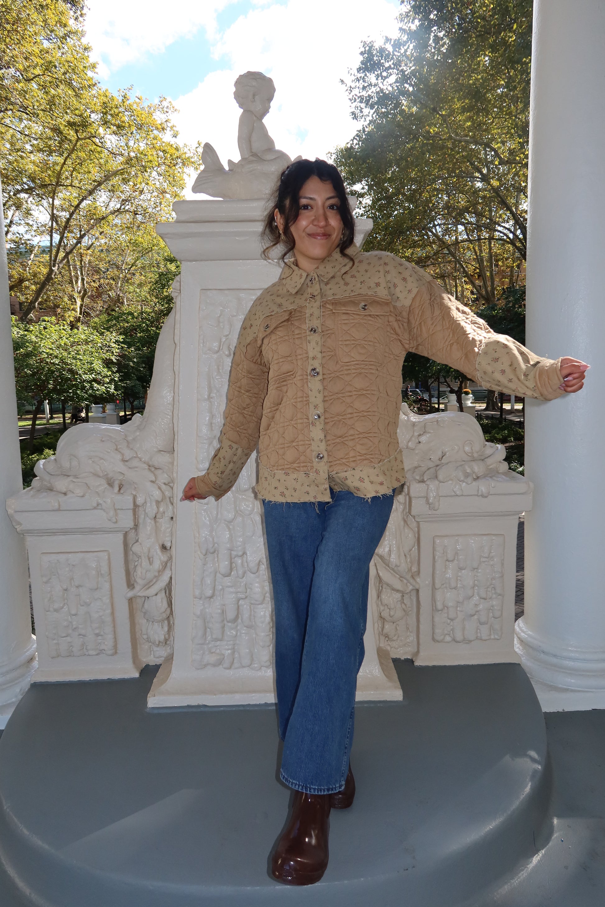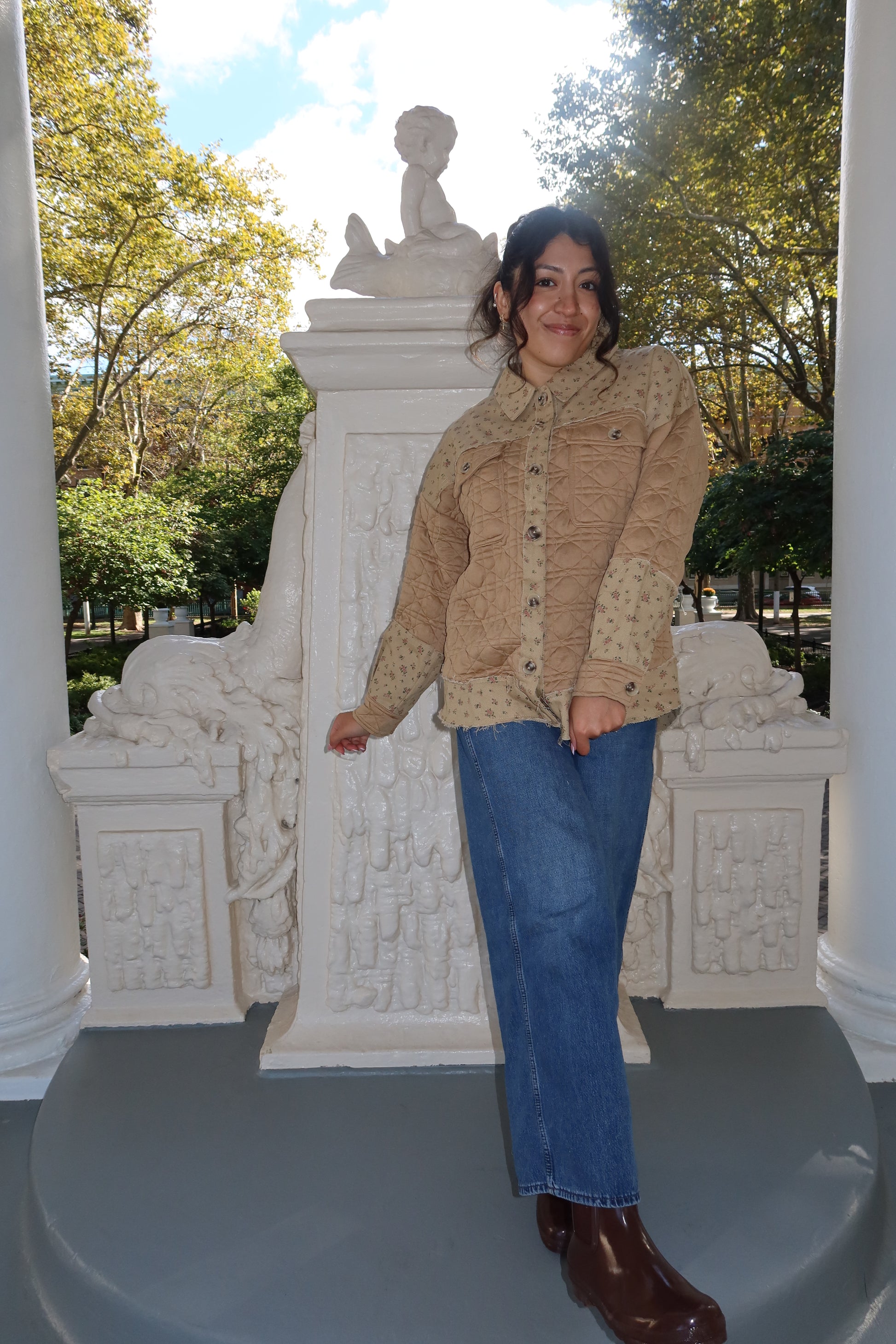 Wrap yourself in cozy charm with our Meadow Quilt Shacket, a soft blend of cottage-core comfort and effortless style. Designed with quilted detailing and delicate floral accents, this piece feels like a warm autumn afternoon in your favorite countryside field. The relaxed fit and button-down style make it easy to layer over knits or tees, giving you that perfectly undone, cozy-girl look.