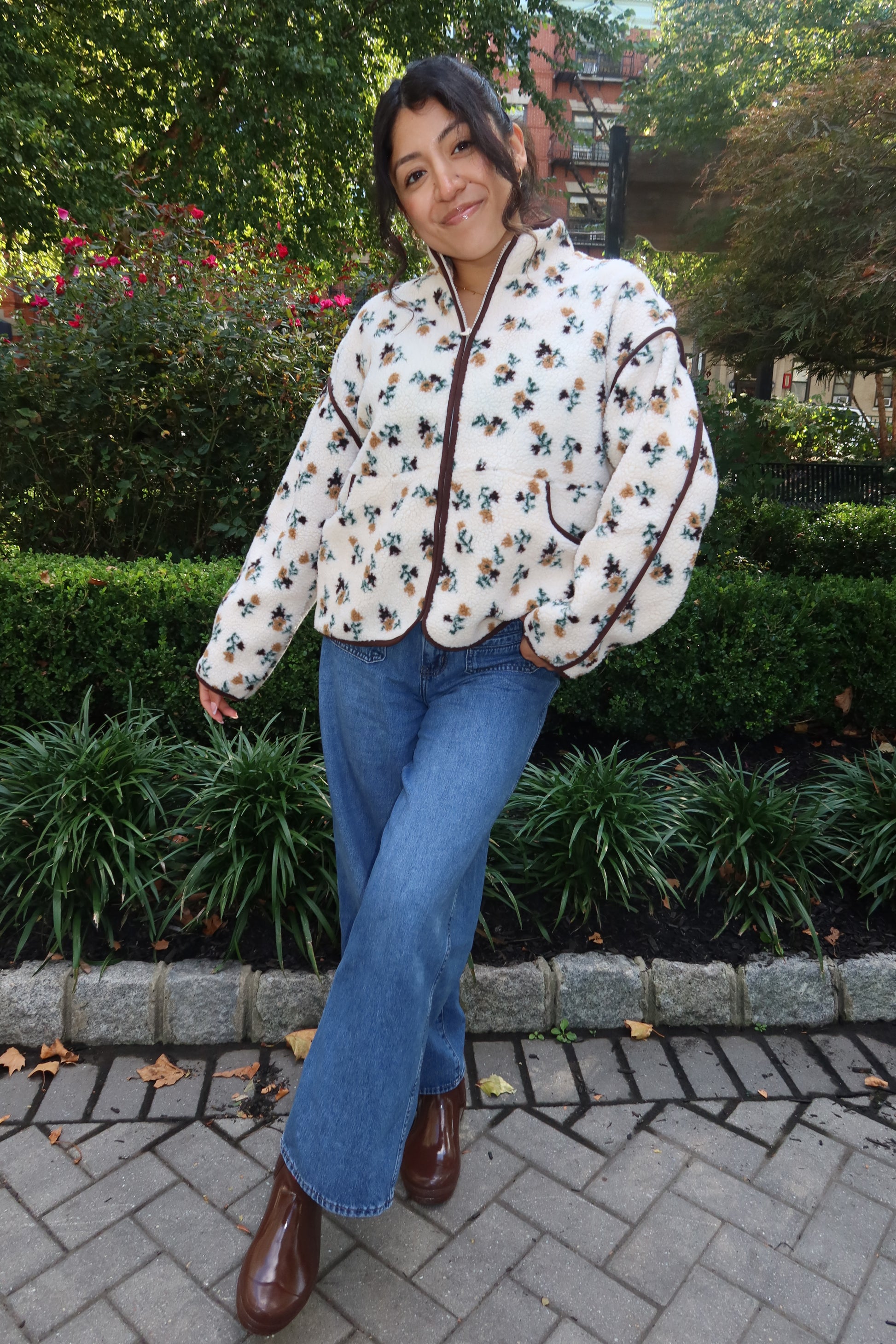The October Stroll Sherpa will be you new fall favorite. Crafted from ultra-soft sherpa with a delicate floral pattern, this piece captures the magic of cozy autumn days. Whether you’re strolling through the pumpkin patch, heading to brunch, or watching the leaves fall, it’s the perfect layer for staying warm while looking effortlessly chic.
